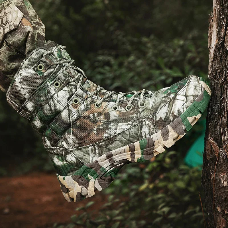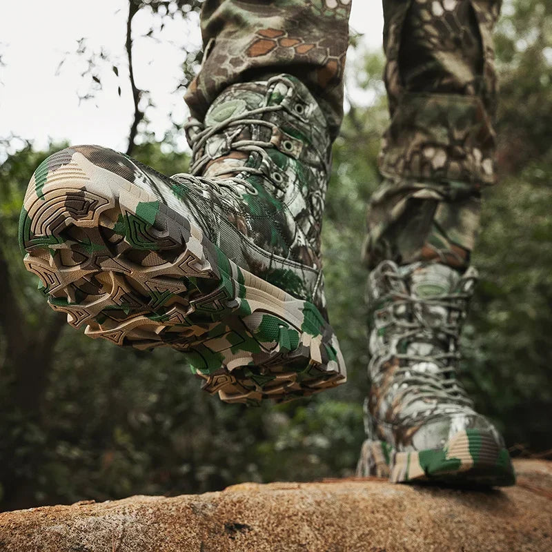 Explorez tous les terrains avec ces bottes tactiques de randonnée camouflage, conçues pour offrir robustesse, stabilité et confort lors de vos activités en extérieur. Leur design inspiré du style militaire combine performance et durabilité, ce qui en fait un excellent choix pour la randonnée, le trekking ou les activités outdoor.