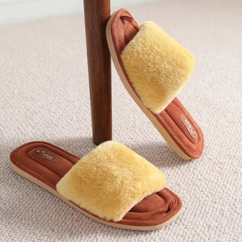 Pantoufles Plates Ouvertes en Peluche